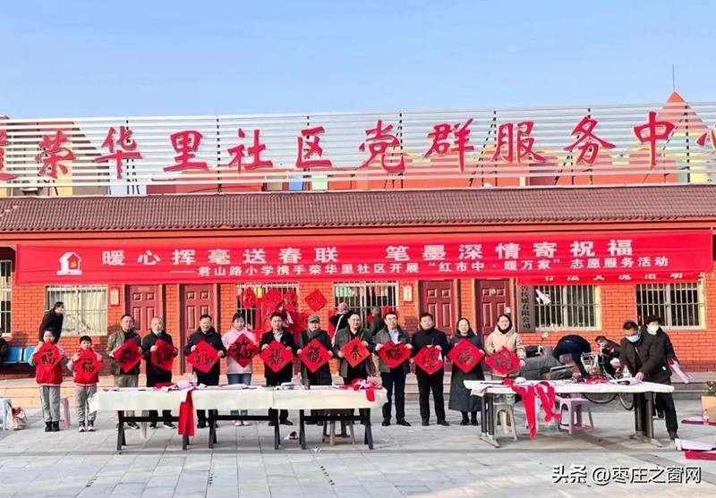 1月11日下午,接到區(qū)融媒體中心的電話,《棗莊之窗》小編驅(qū)車來到榮華里社區(qū),感受這里不一樣的年味氣氛。來到社區(qū)大院,看到書法愛好者、社區(qū)紅馬甲、學(xué)生們,還有周邊的社區(qū)居民早早來到大院忙乎了起來,你搬案桌,我裁紙,他研墨水,準(zhǔn)備著一場書寫春聯(lián)的筆墨盛會。