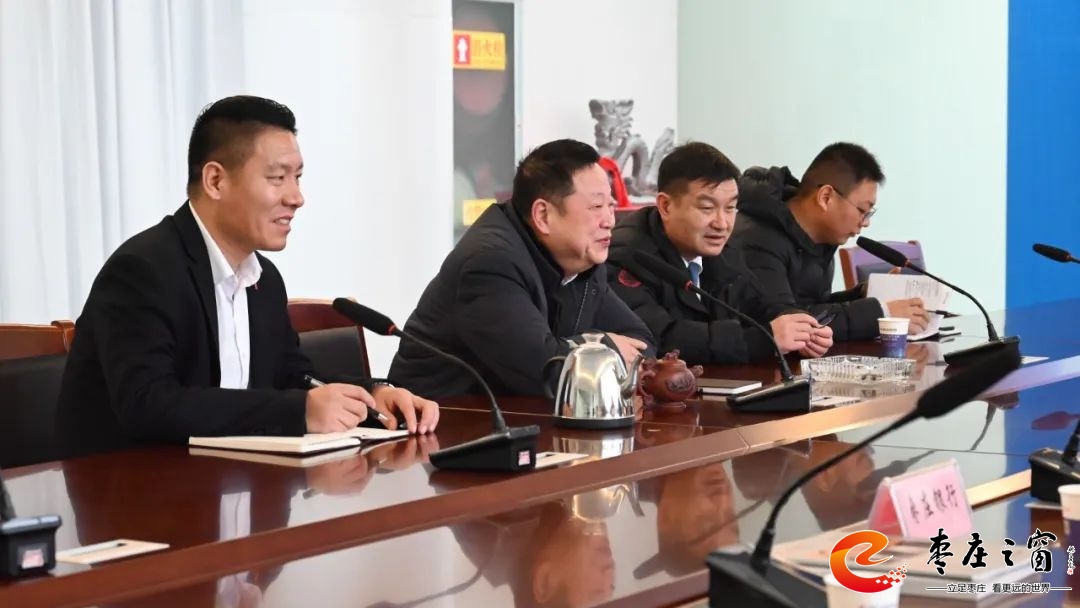 1月 12日 ,棗莊高新區(qū)財政金融局副局長耿慶華、張范街道辦事處領(lǐng)導(dǎo)及棗莊銀行、農(nóng)商銀行負(fù)責(zé)人等蒞臨人民控股集團(tuán)山東公司調(diào)研指導(dǎo)工作,協(xié)調(diào)解決企業(yè)金融服務(wù)需求。人民控股集團(tuán)山東公司總經(jīng)理胡啟民、行政副總錢勝樂、辦公室主任李中國陪同座談。