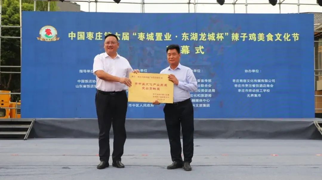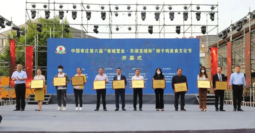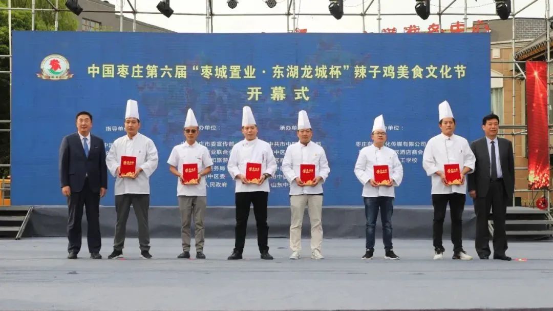開幕式上,中國飯店協(xié)會副會長、中國飯店協(xié)會名廚委員會主席石萬榮發(fā)來了祝賀視頻。企業(yè)家代表山東棗城置業(yè)有限公司董事長殷允夷致賀詞。與會領(lǐng)導(dǎo)分別為“全雞宴”美食賽獲獎團隊、首屆“慢品市中”美食評選獲獎單位、市中區(qū)文化產(chǎn)業(yè)發(fā)展突出貢獻獎獲獎單位頒獎,并共同啟動第六屆辣子雞美食文化節(jié)。