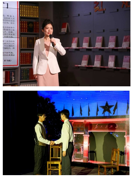 旅游管理系黨支部副書記王娟以《思想浸潤(rùn)心靈 傳文脈繼往開來(lái)——習(xí)近平文化思想在浙江的溯源與實(shí)踐》為題,分享了《習(xí)近平在浙江》的讀書心得,情景劇《遺址邊的吶喊》,將思想性、藝術(shù)性及感染力高度結(jié)合,讓觀眾在情感共鳴中感受習(xí)近平文化思想的偉力。